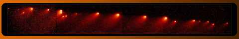 Starting on July 16th and continuing for about a week, we all watched in wonder as pieces of the comet rained down on Jupiter. The impacts had a greater effect than we had even dreamed they would. The impacts were so large that the Hubble Space Telescope captured breathtaking images like the one at right. Some larger telescopes here on Earth were also able to see the impact sites, which are the dark patches in the images at the right. You can also see Jupiter's Great Red Spot in the image, which should give you a good idea just how large the comet's impacts were.