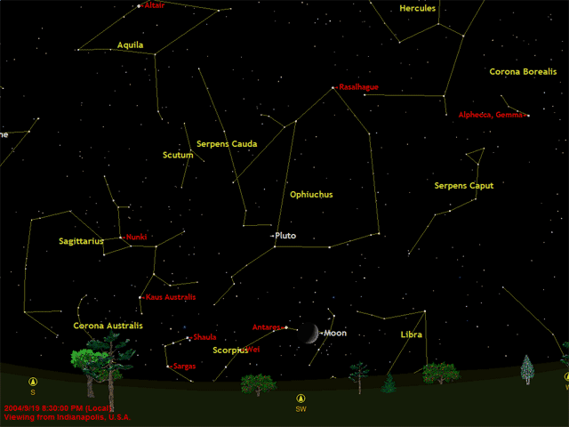 Look for a slender young Moon next to Antares, the heart of the constellation Scorpius just after sunset this evening.