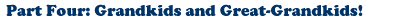 The journey is in four parts, with a couple of story pages for each part. Attached to each of the story pages are several pictures of our family from early this century to Christmas of 1997. Whenever you see a picture on the right side of the page, you can click on it to see a full-sized version of the picture, along with (hopefully) some information about the people or events in the picture. When you go to the picture page, there will be a bar at bottom of the page that you can click on to bring you back to where you were. Go ahead, try it!